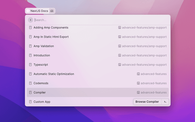 This extension allows you to quickly take a glance at the NextJS documentation.