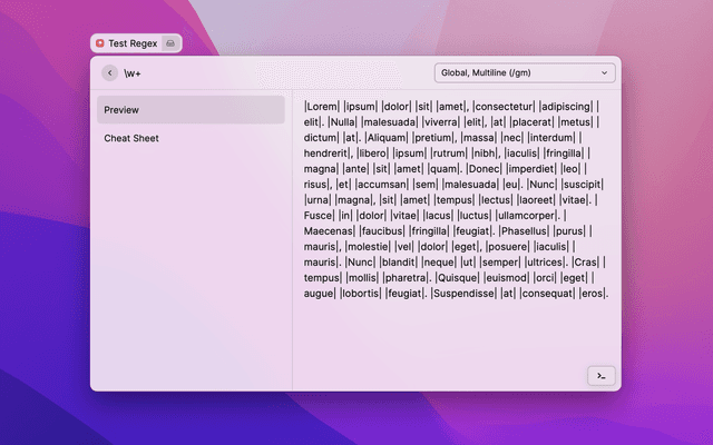 Preview and test regular expressions