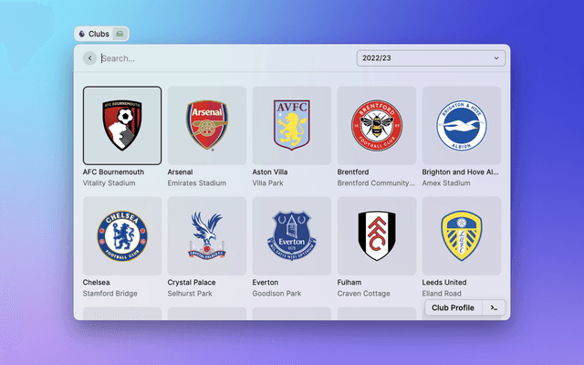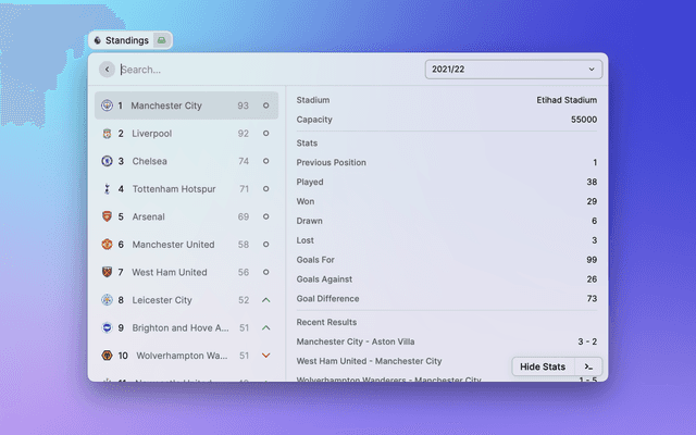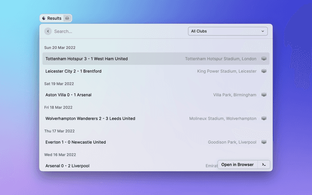 View the latest Premier League tables, form guides and season archives in Raycast