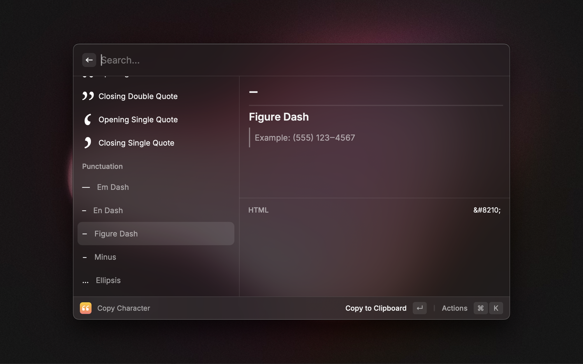 Use the right typographic character with the Type Snob extension made by Sawyer Hollenshead. An em dash (—) is not the same as an en dash (–) or a figure dash (‒). Likewise, three following dots (...) are not the same as an ellipsis (…). Type Snob ensures you’re always using the right character at the right time.