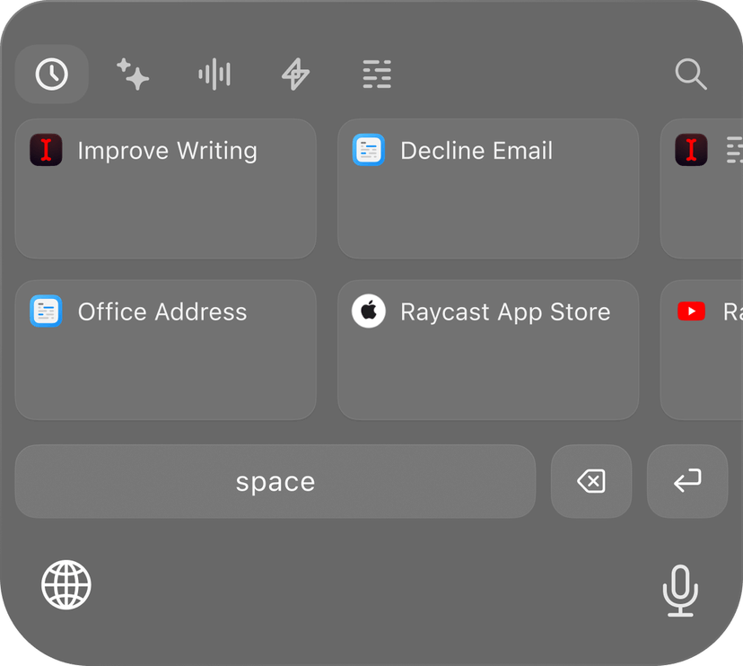 Designed to work well beyond the app icon. Raycast is integrated into many iOS features.