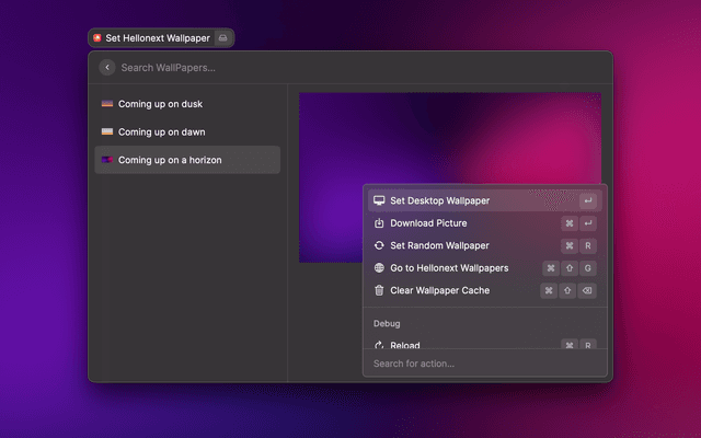 Search images or collections on Unsplash, download, copy or set them as wallpaper without leaving Raycast!