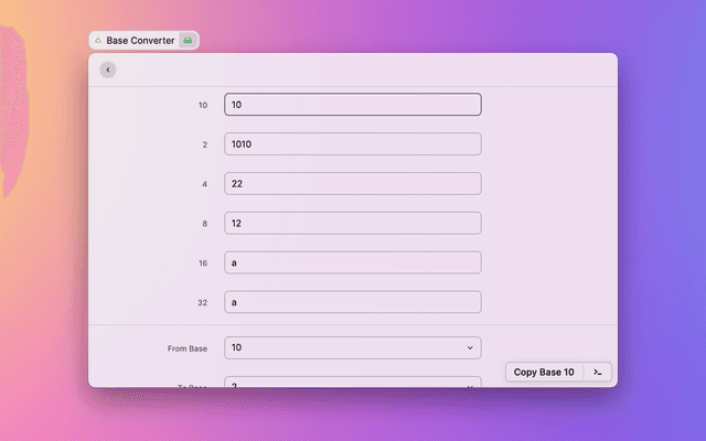 - Advance View: In the advanced view, you can freely choose the bases of mutual conversion.