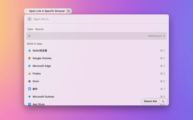 Specify a browser to open a URL or Text that is selected or on the clipboard.