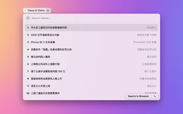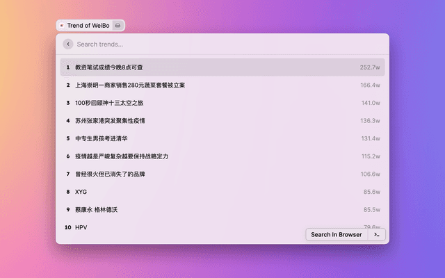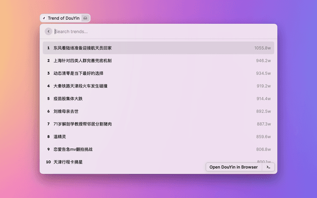 Show trends on WeiBo, ZhiHu, and DouYin.