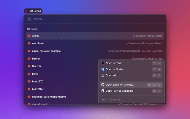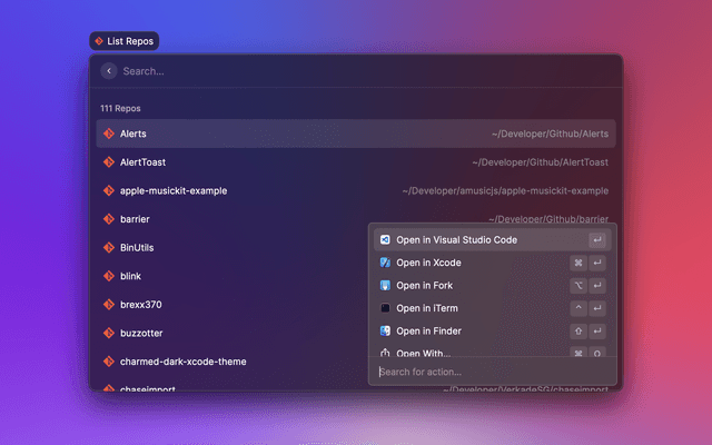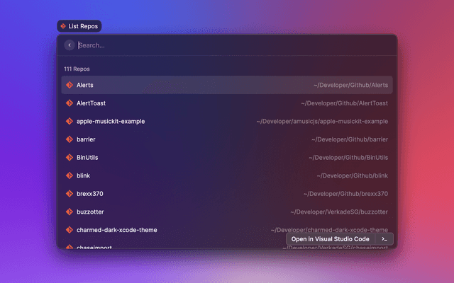 Search and open recent projects from Visual Studio Code.