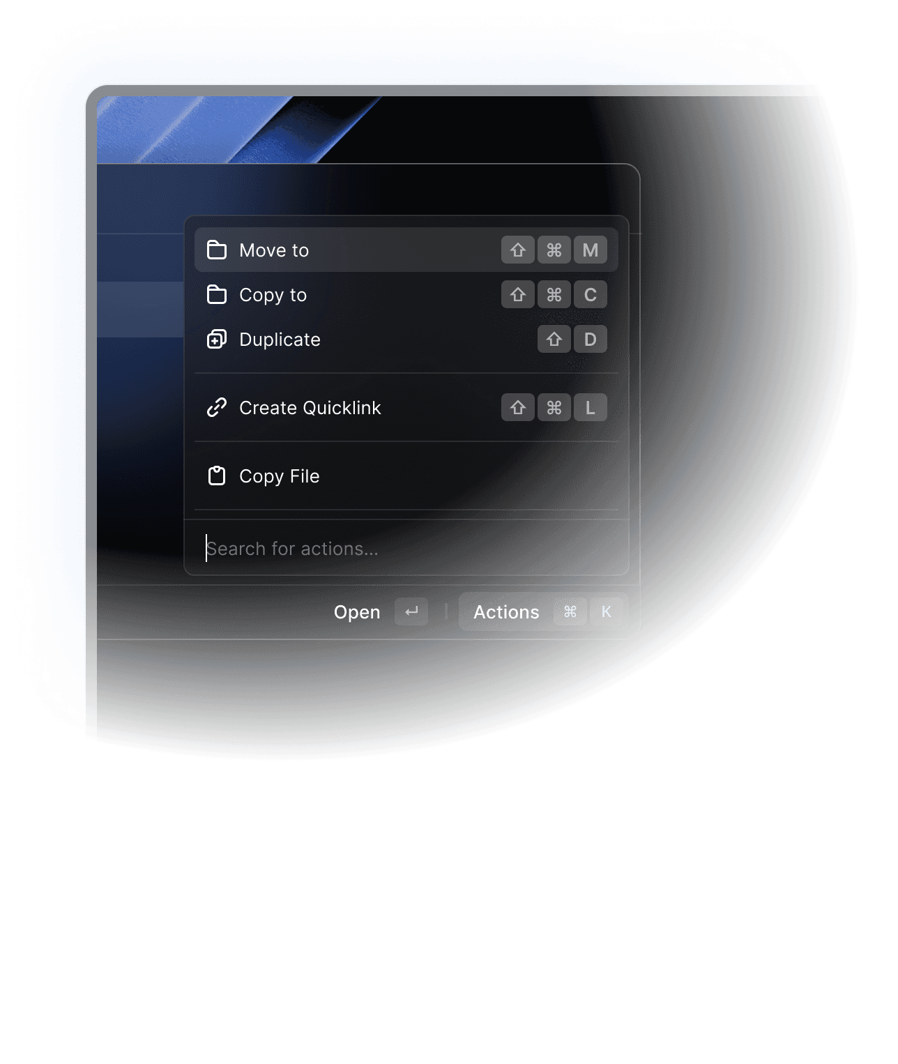 Raycast feels right at home on your Mac and is built with a keyboard-first approach that allows you to navigate the entire interface and use extensions without touching your mouse. You can perform any action with the standardized ⌘K Action menu, helping you stay in the flow.